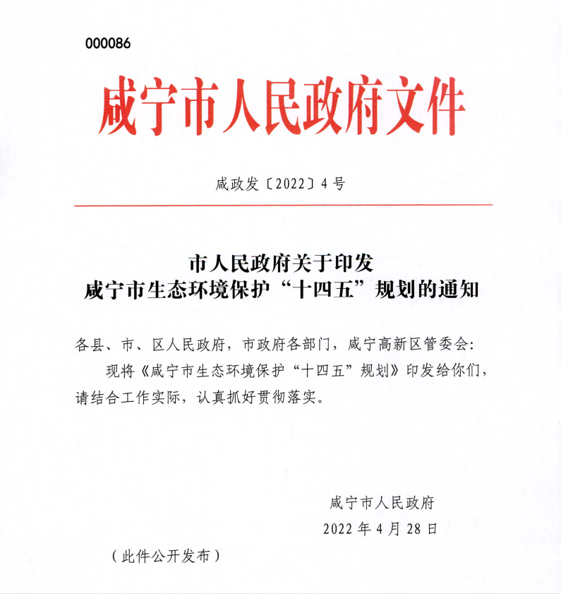 名 称: 咸宁市生态环境保护“十四五”规划 发布日期: 2022年05月11日