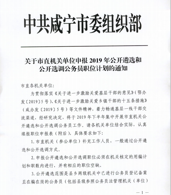 关于市直机关单位申报2019年公开遴选和公开选调公务员职位计划的通知