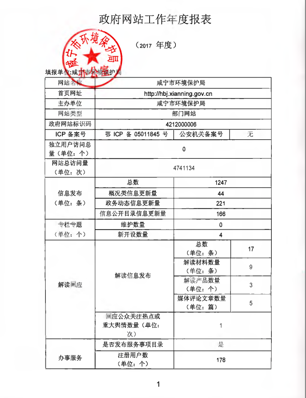 名 称: 政府网站工作年度报表(2017年度) 发布日期: 2018年01月31日