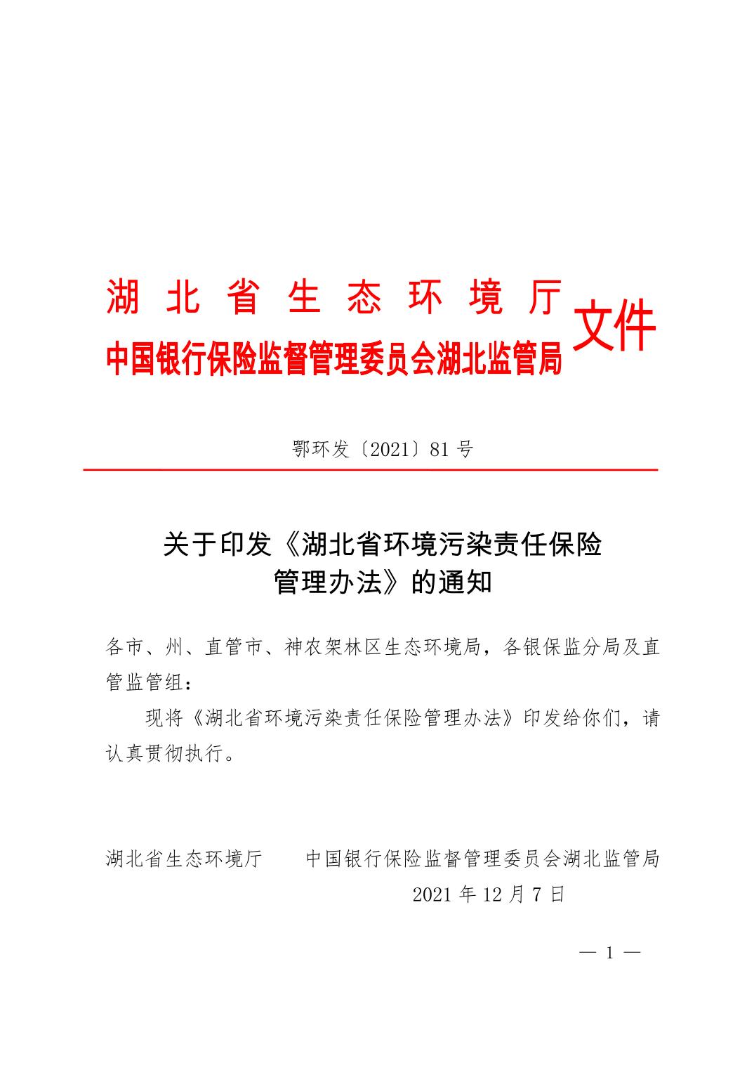 关于印发《湖北省环境污染责任保险管理办法》的通知