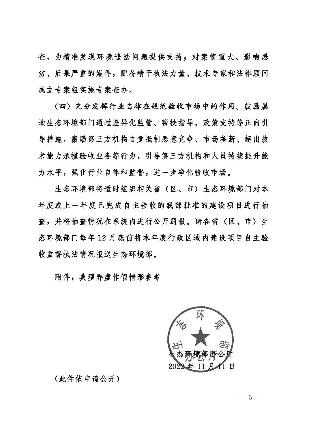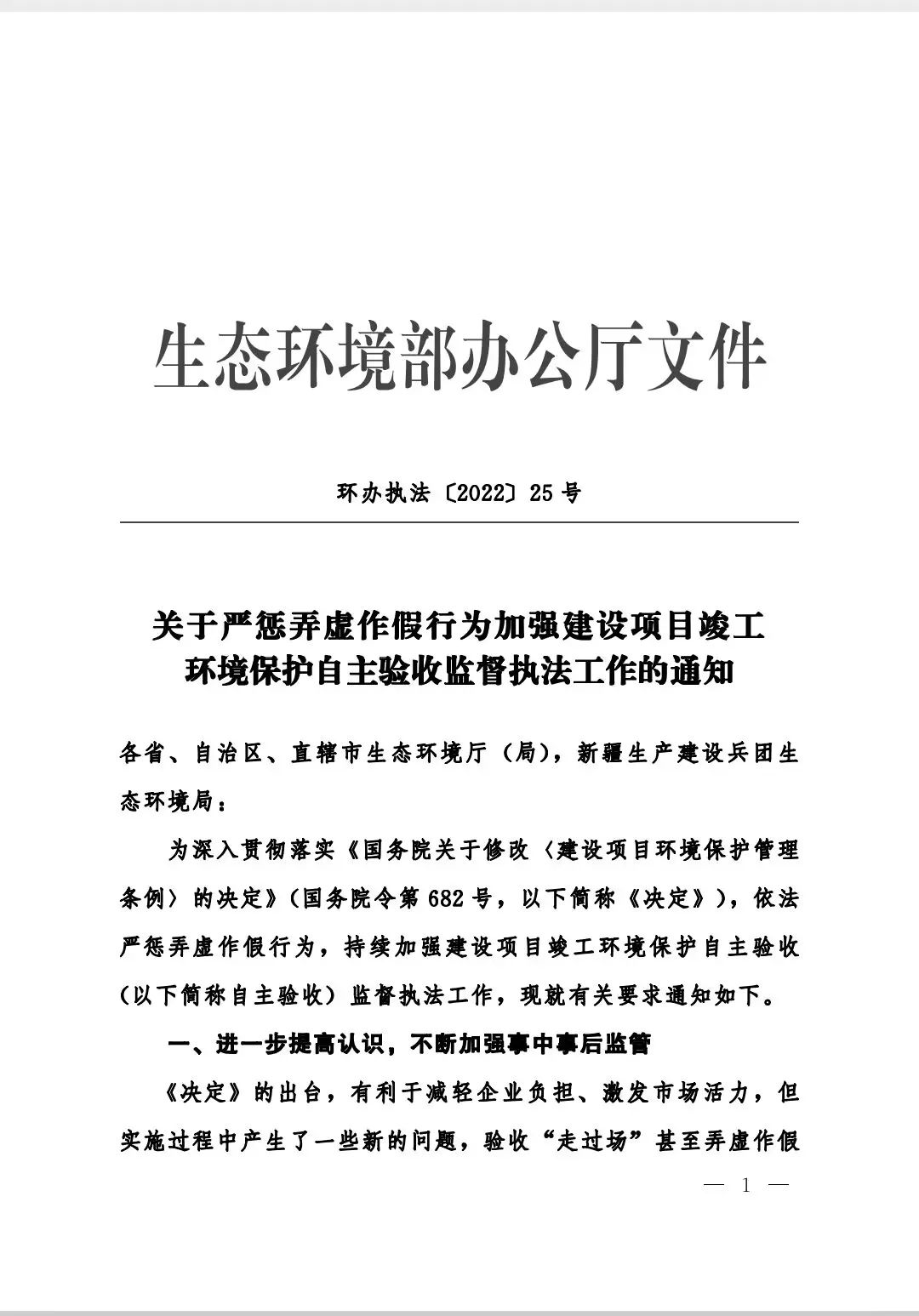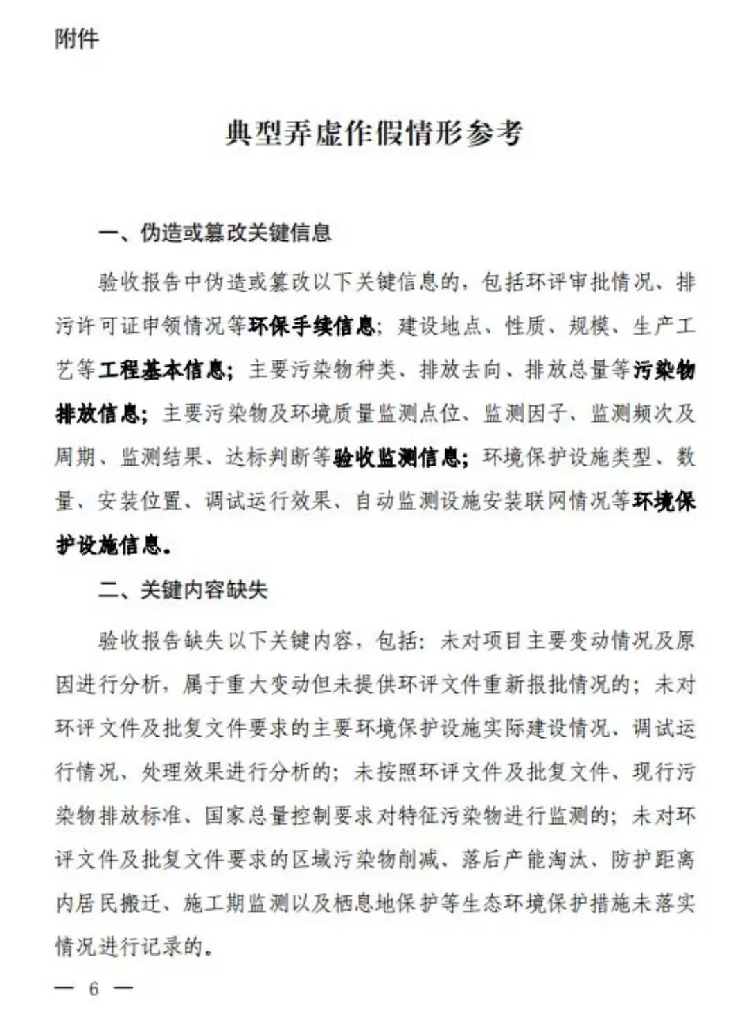 《关于严惩弄虚作假行为加强建设项目竣工环境保护自主验收监督执法工作的通知》