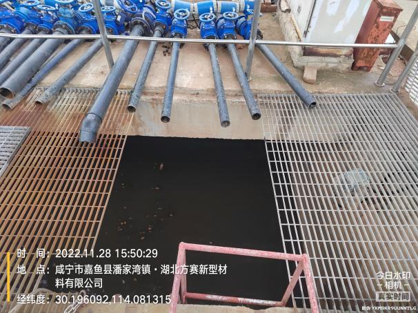 4)污水处理厂的排放口处设置了巴歇尔槽进行流量计算,并安装了cod、氨氮、总磷和总氮在线监测仪器,实时监测污水处理厂尾水水质。检测员每日对生化池、水解酸化池等构筑物的水质进行监测,一旦发现水质不达标,立刻关闭排水泵,将排水抽至事故池,再进行重新处理,确保废水稳定达标排放。