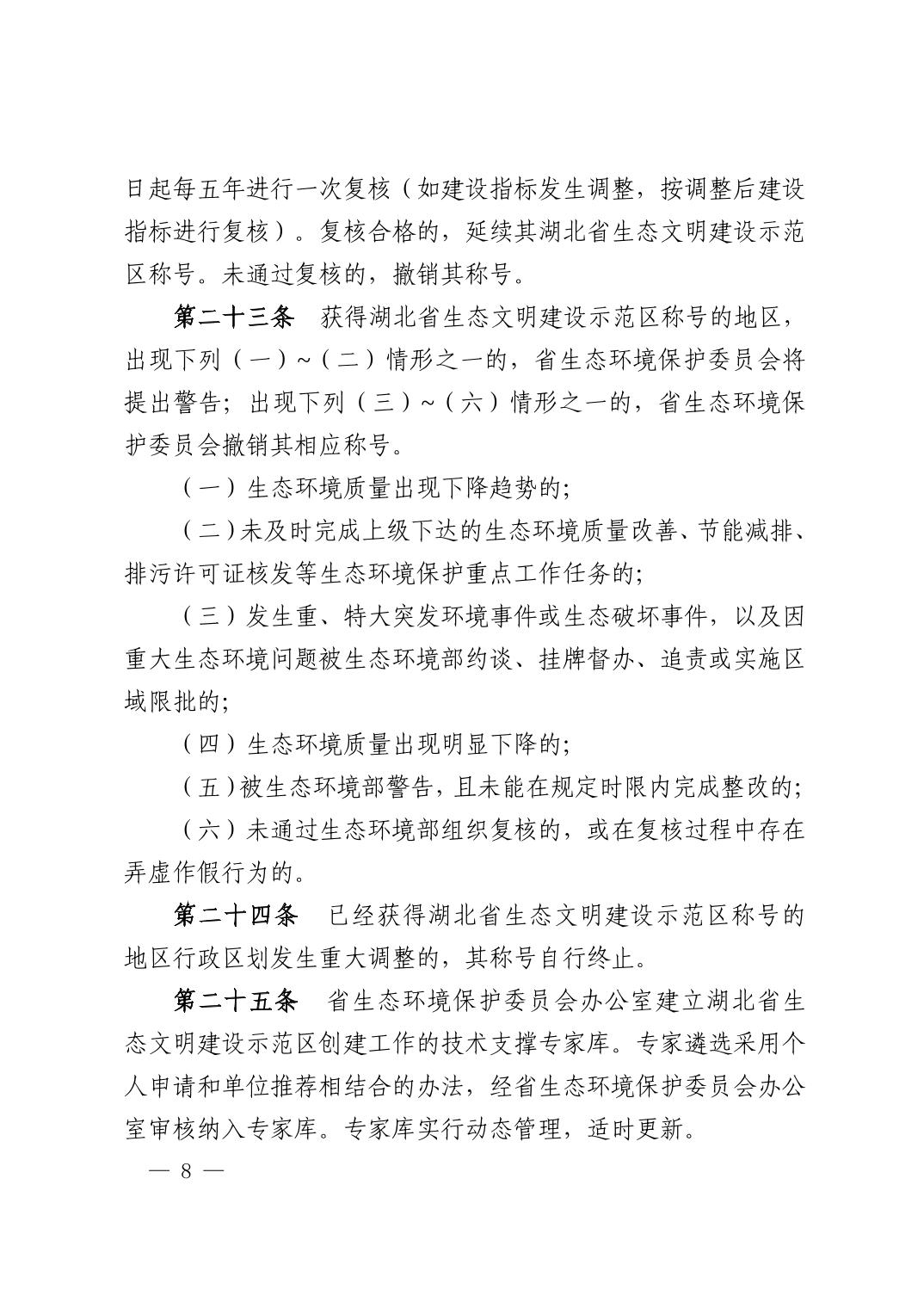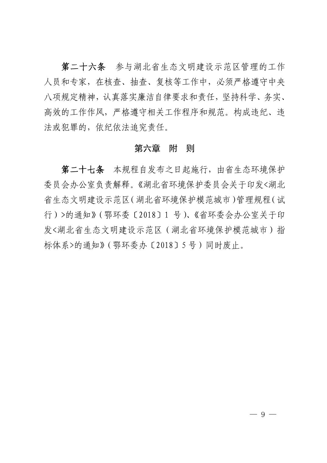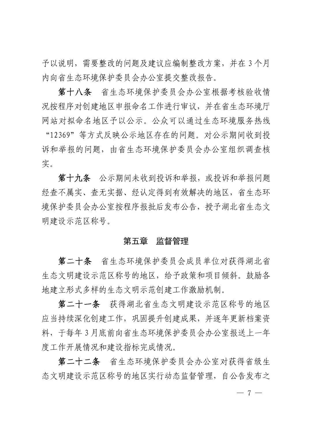 省生态环境保护委员会关于印发湖北省生态文明建设示范区管理规程(2021年修订)的通知)